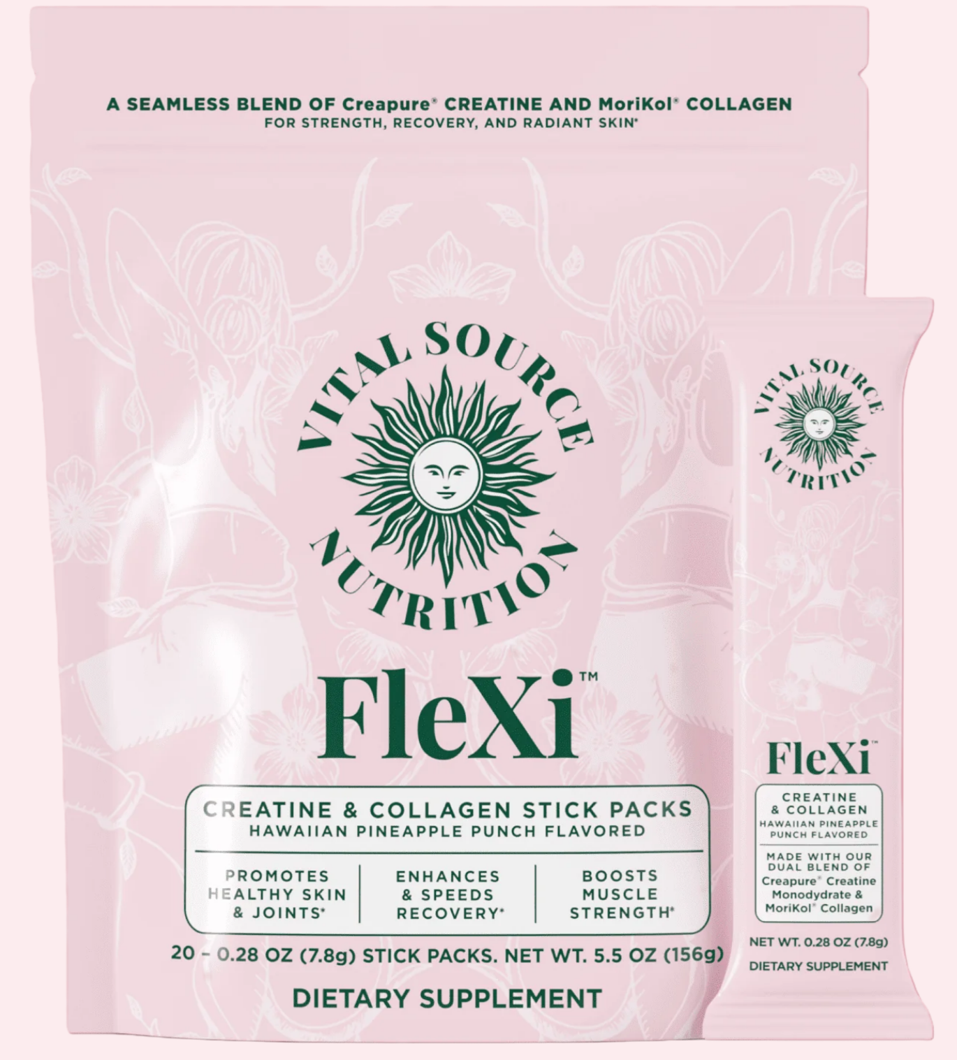 Flexi™ Creatine Collagen Stick Packs offer a powerful, two-in-one solution for joint and muscle health. This unique formula combines 5g of Creapure®® creatine monohydrate to enhance strength and muscle recovery with 10g of hydrolyzed collagen to support joint flexibility and healthy hair, skin, and nails.